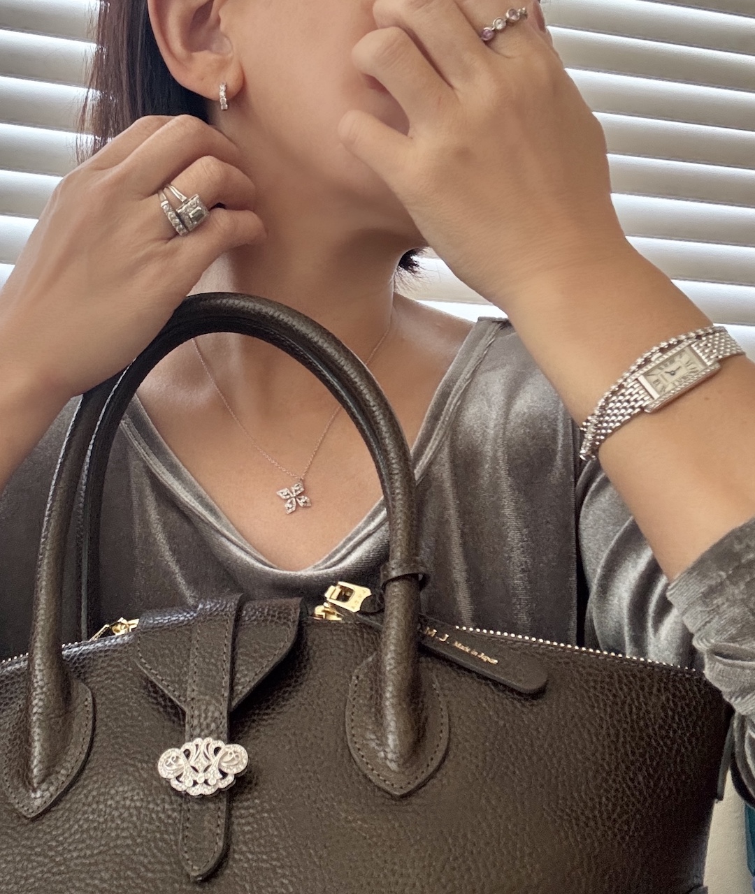 私にとって悩ましい金具使い(私は、バッグの金具とジュエリーの地金のカラーを統一したいタイプなので)