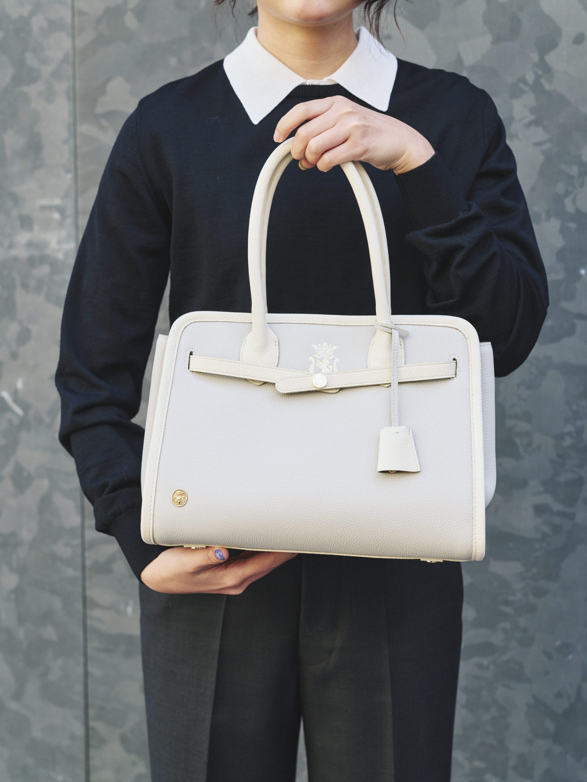 グレイッシュホワイト×クリームホワイトの素敵なバッグ。