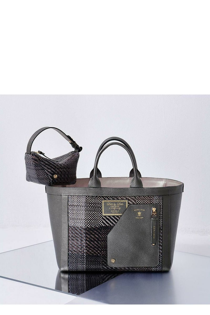 コンサバすぎるバッグにならないのは、ライダースジャケットのポケットをモチーフにしたデザインポケットがあるからこそ。