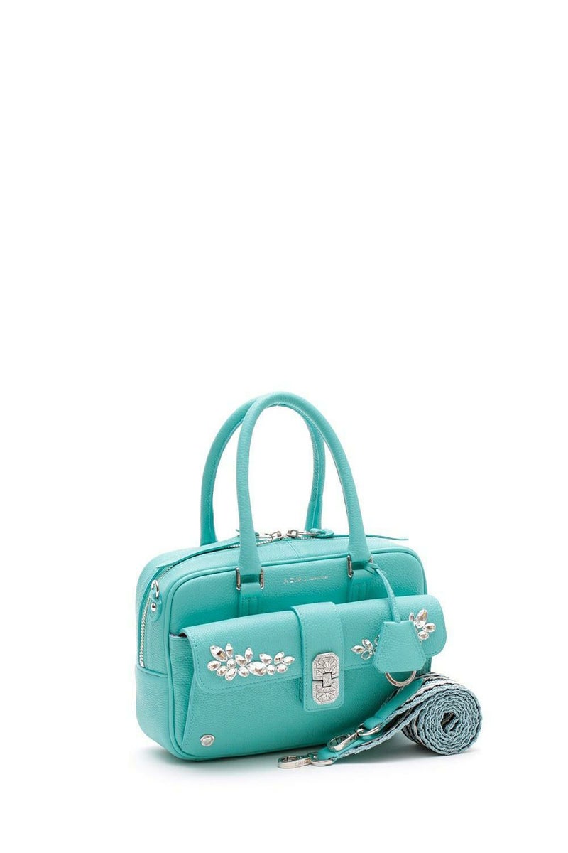 約140石のスワロフスキー・クリスタルを閉じ込めたアールデコ調の金具は、ジュエリーに勝るとも劣らない自慢の逸品。