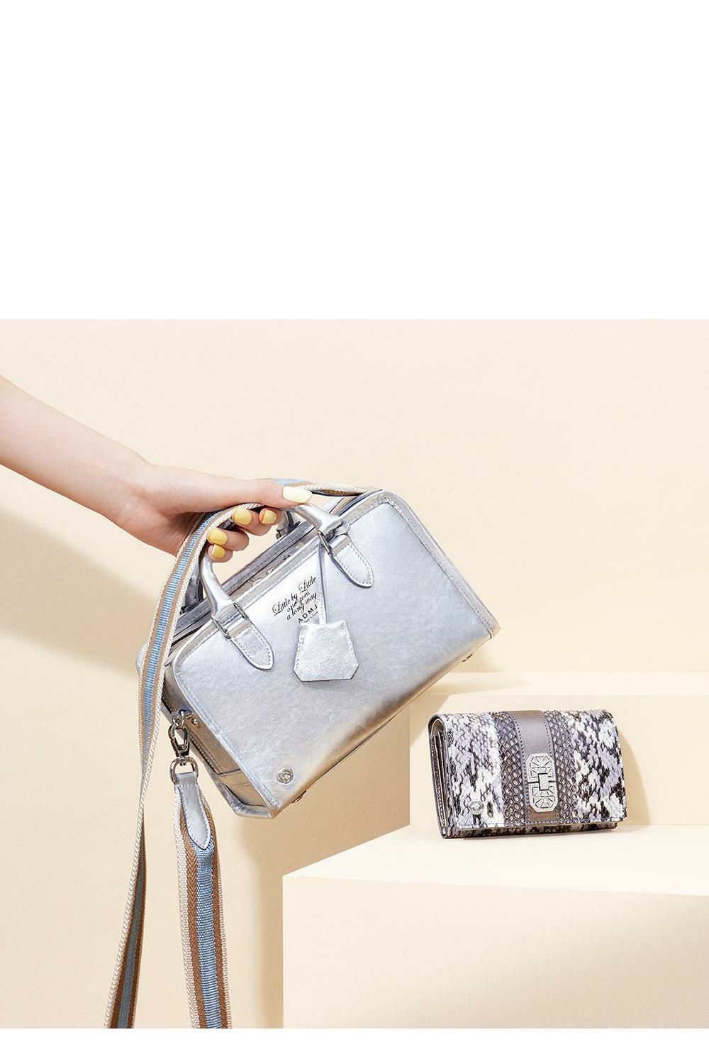 柔らかなレザーの質感とメタリックの絶妙な光沢感が両立するマテリアルです。