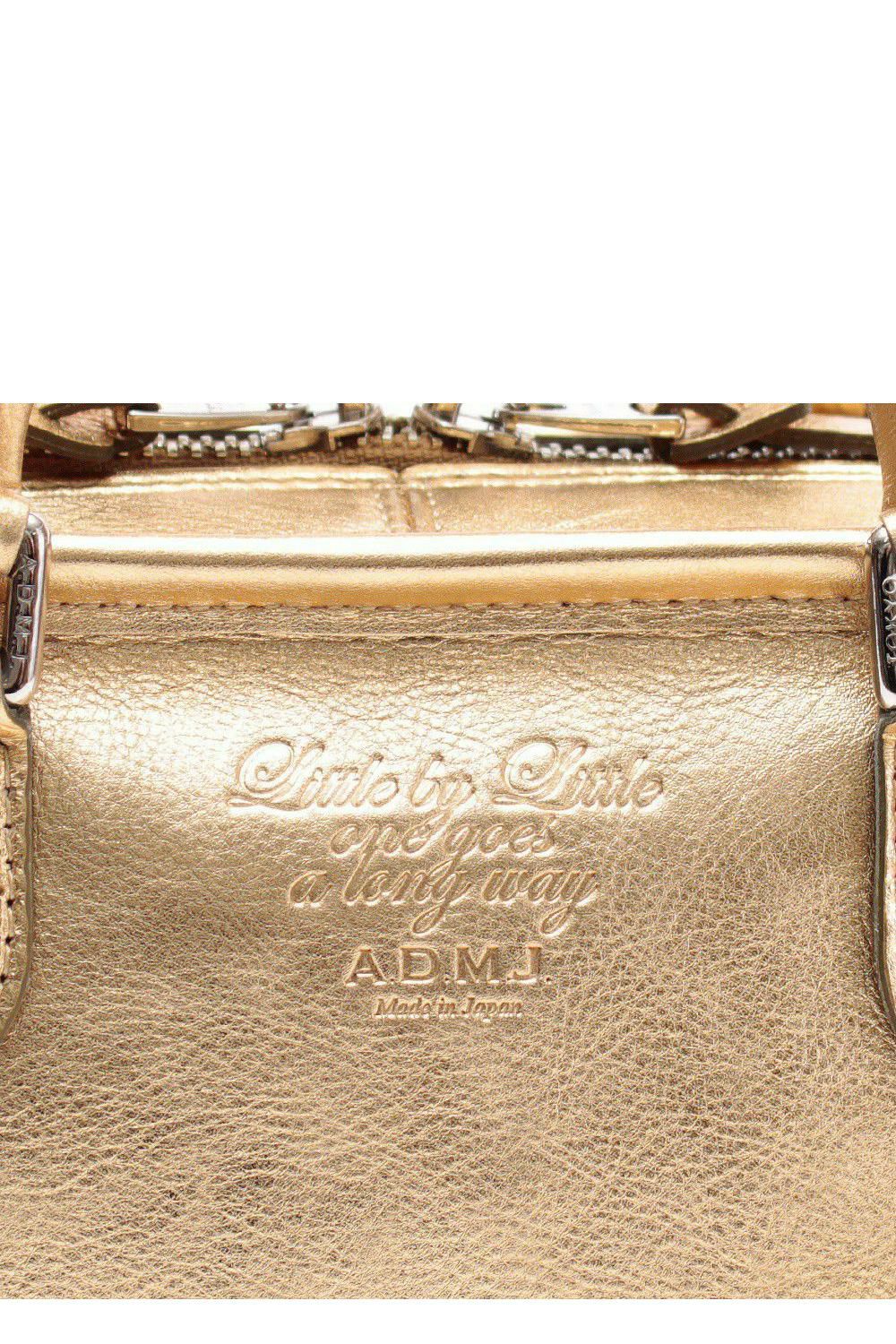 箔押しの「Little by Little one goes a long way(千里の道も一歩から)」というレタリングには、ひとつひとつの素材・パーツの良さを見極め、丁寧に作業を積み重ねてきた、A.D.M.J.らしいメッセージを込めています。