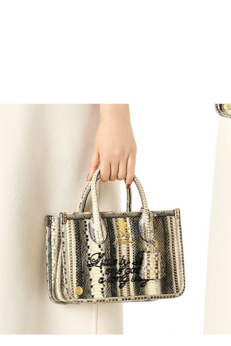 スネークレザー/ビーズ刺しゅうヘリ巻きトート23cm