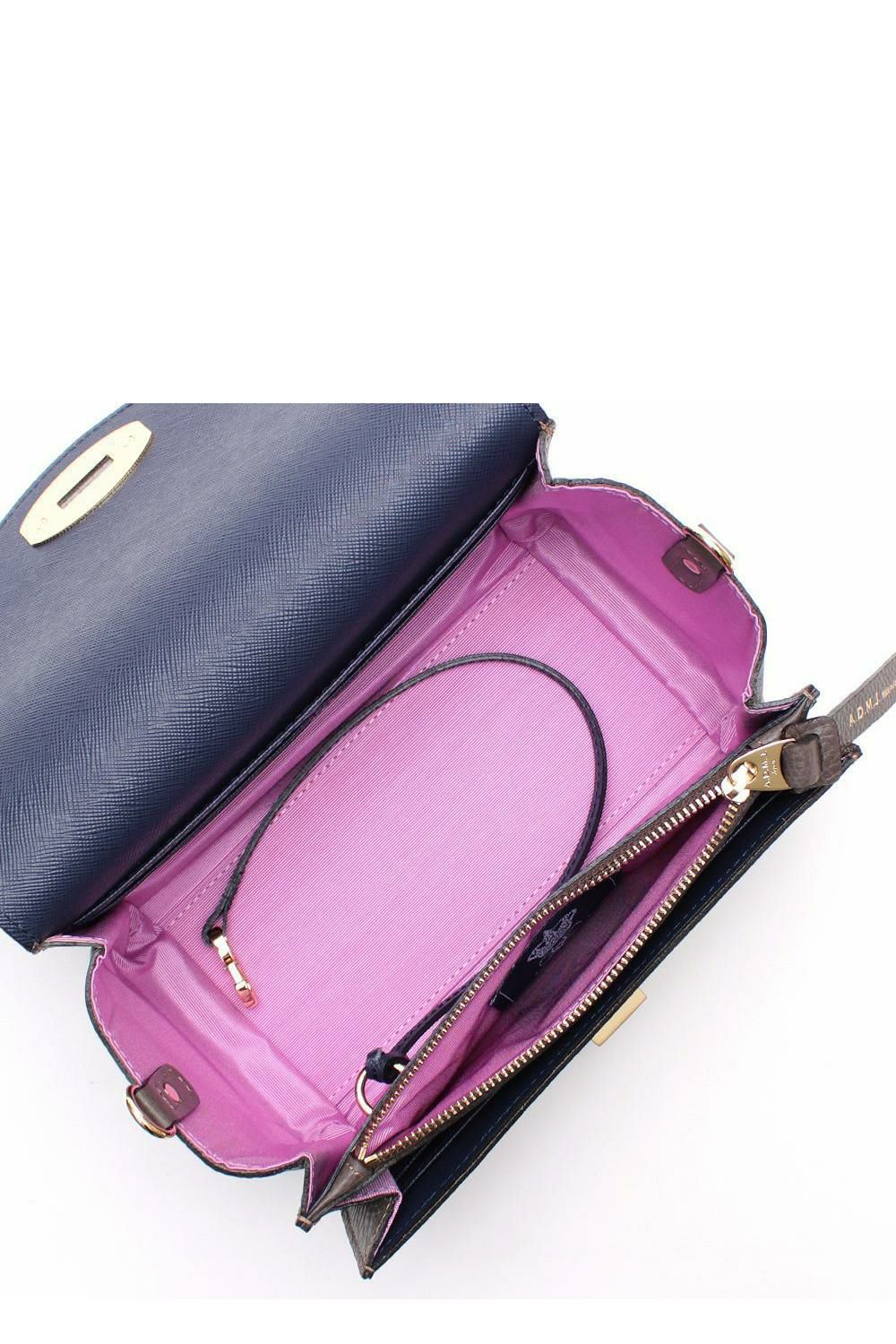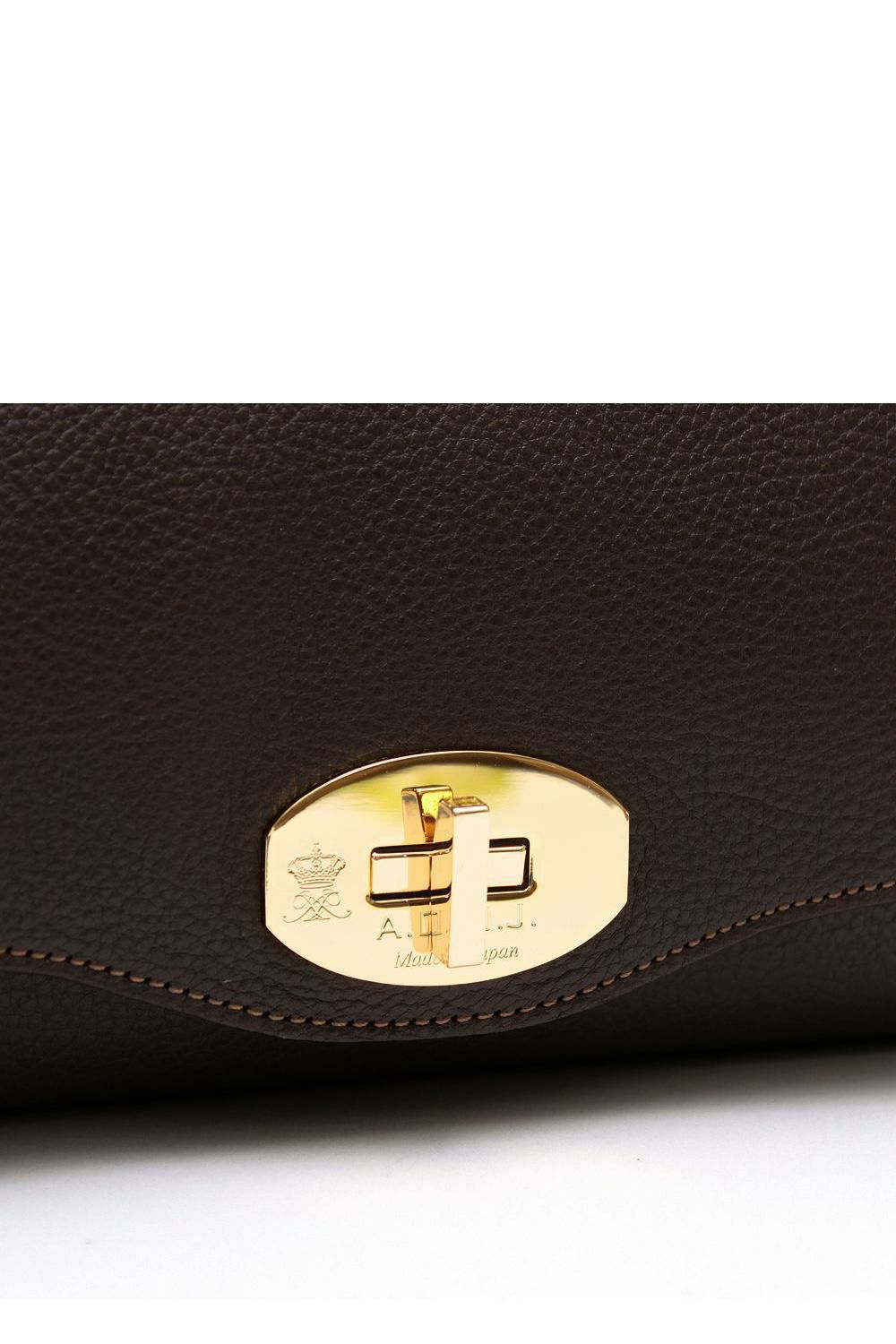 本体開口は、デザイン性を兼ね備えた、made in Japanのクオリティが際立つひねり金具を、ショルダーストラップはアラベスク文様が上品な【リ・ミ(RI ME)社】のバックルで仕立てました。