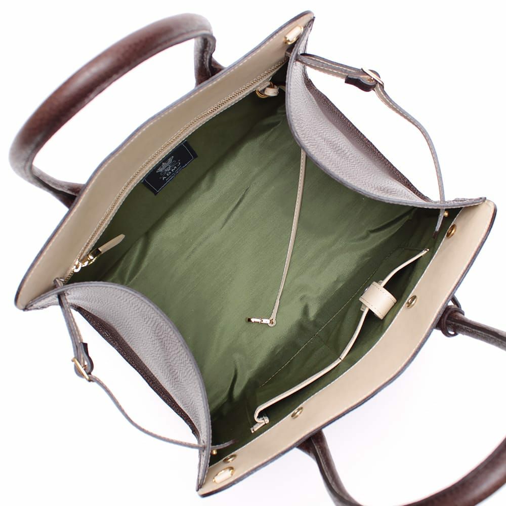 25cmサイズは、共革のショルダーストラップが付いているので肩掛け・斜め掛けもしやすいです。
