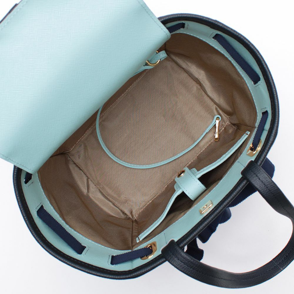 内側:メイン1室、ポケット2個(オープン1個、スナップボタン付1個)、キーストラップ
