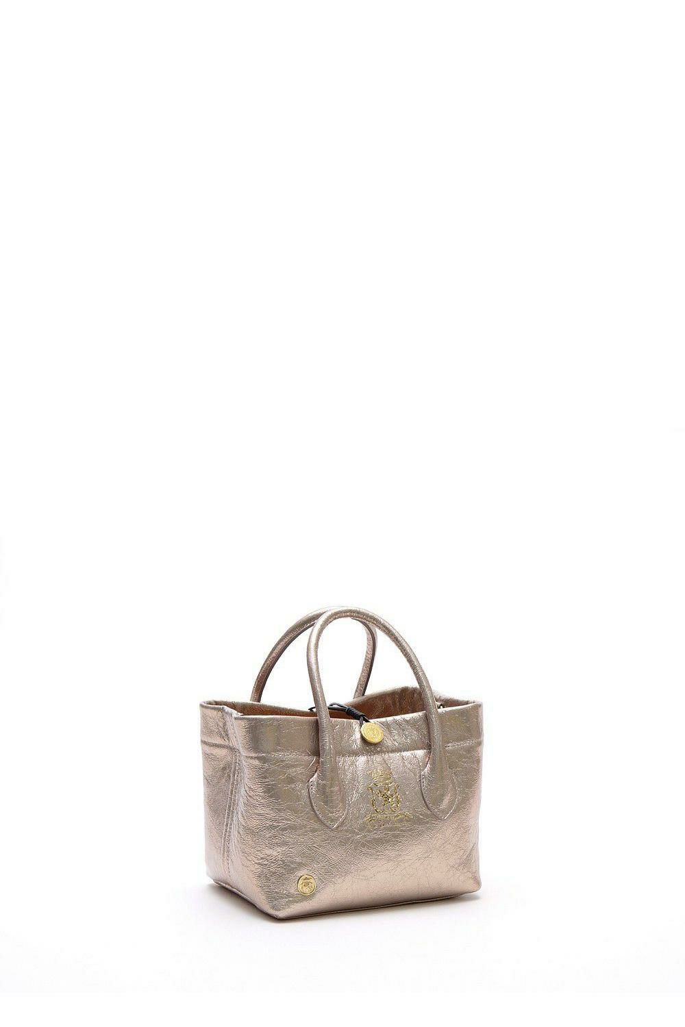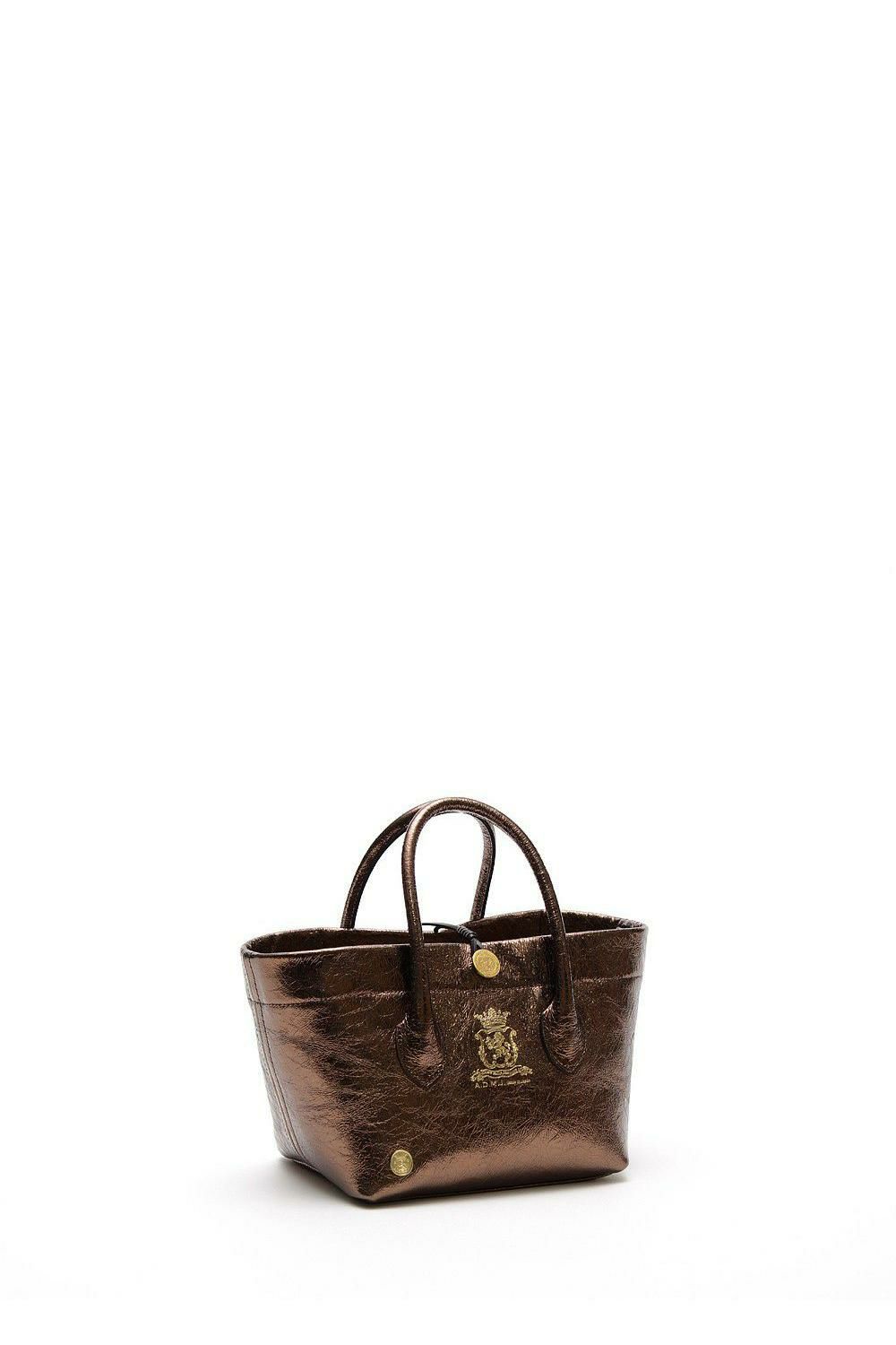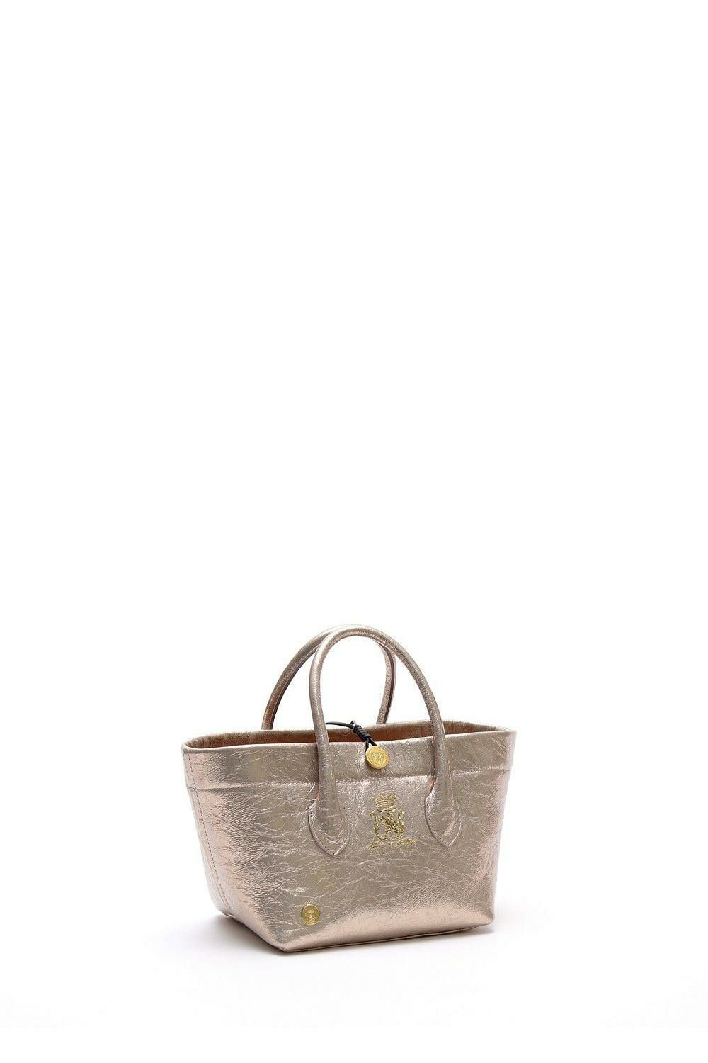 エイジングでアンティークの風合いを楽しめる金ボタン付きのトート。
