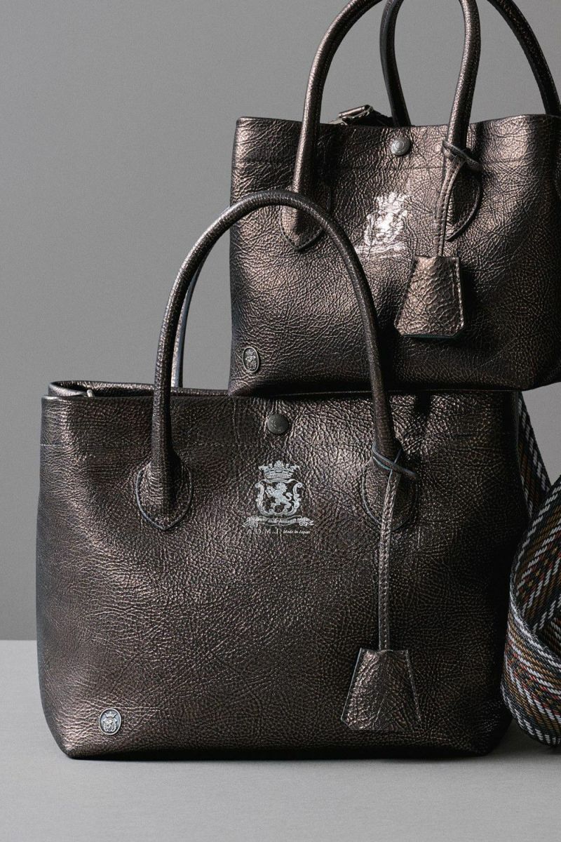 メタリックなカラーリングと革の表情が絶妙にマッチした、シックなマテリアルです。