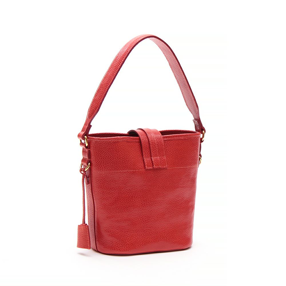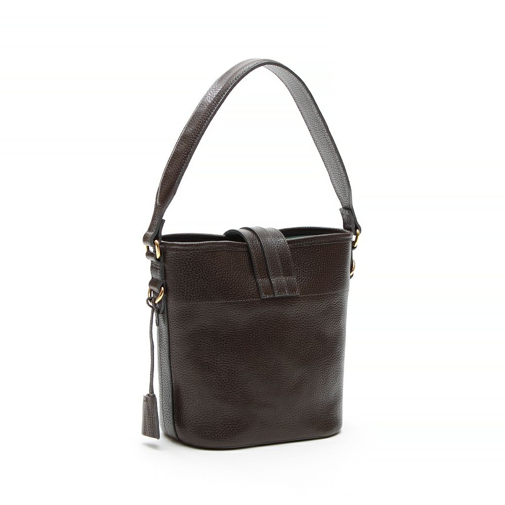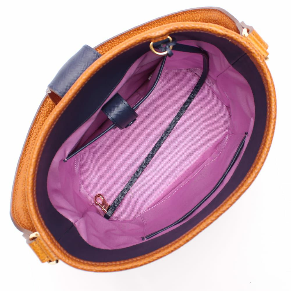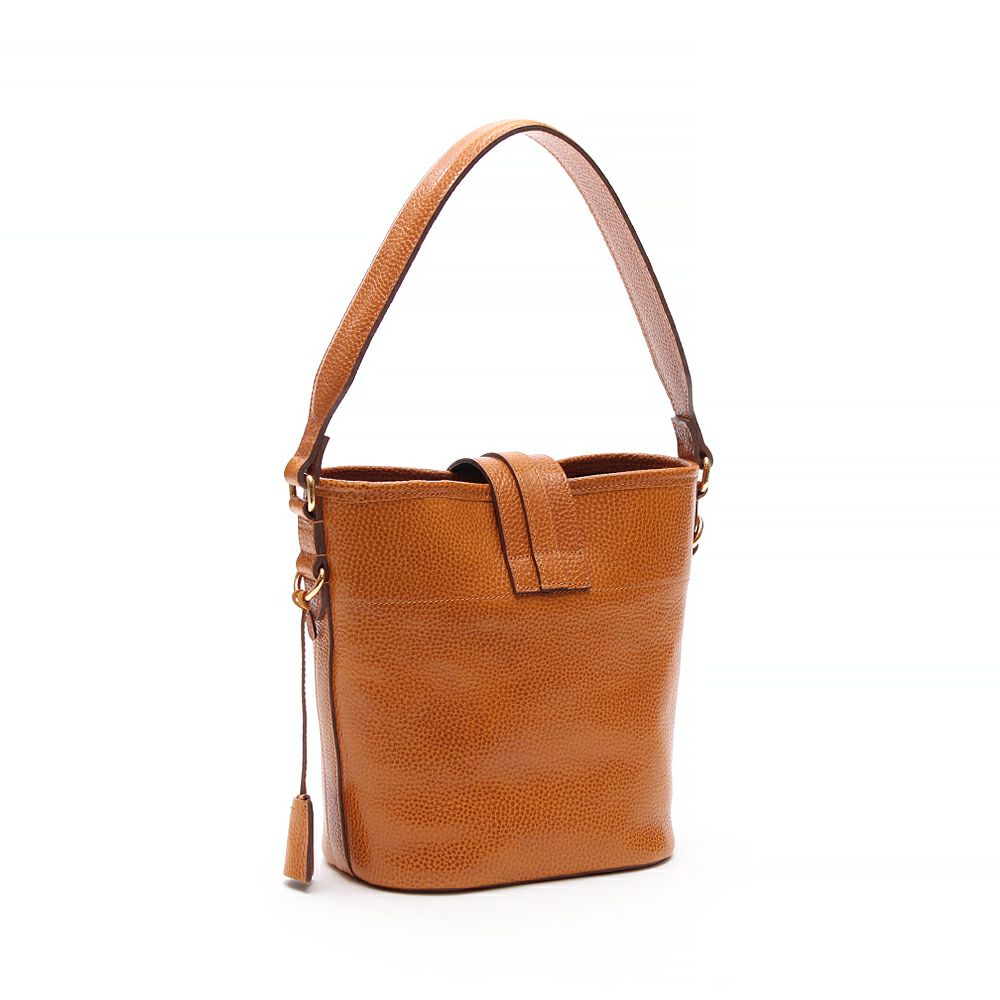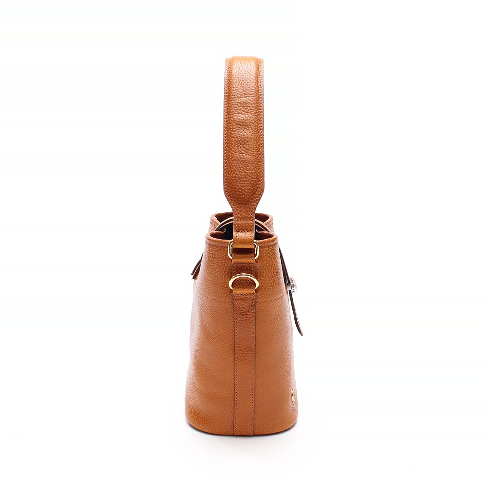 肩掛けできるエレガントなバケット型のトート。