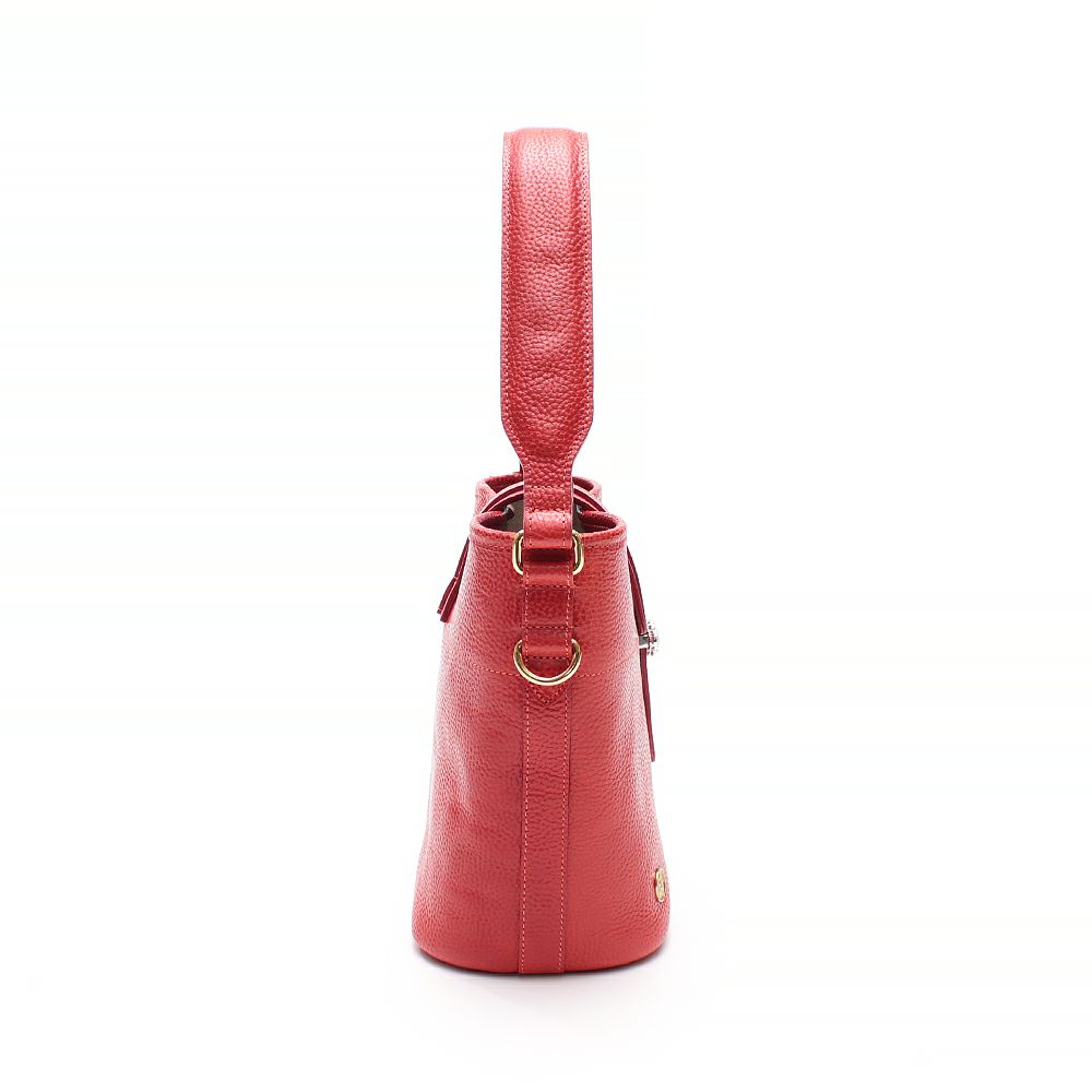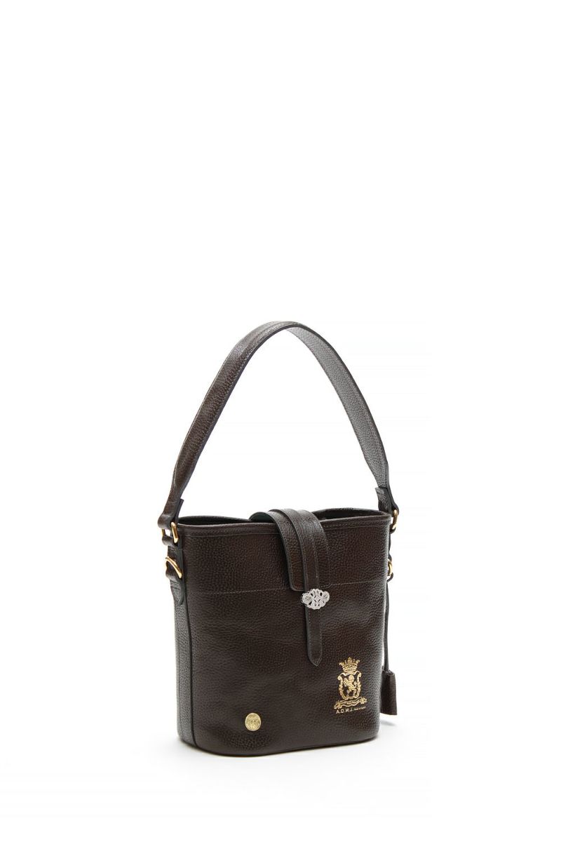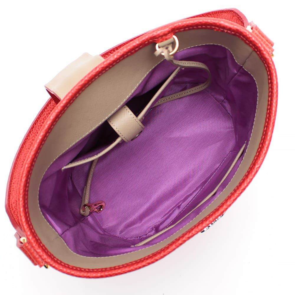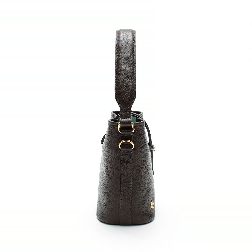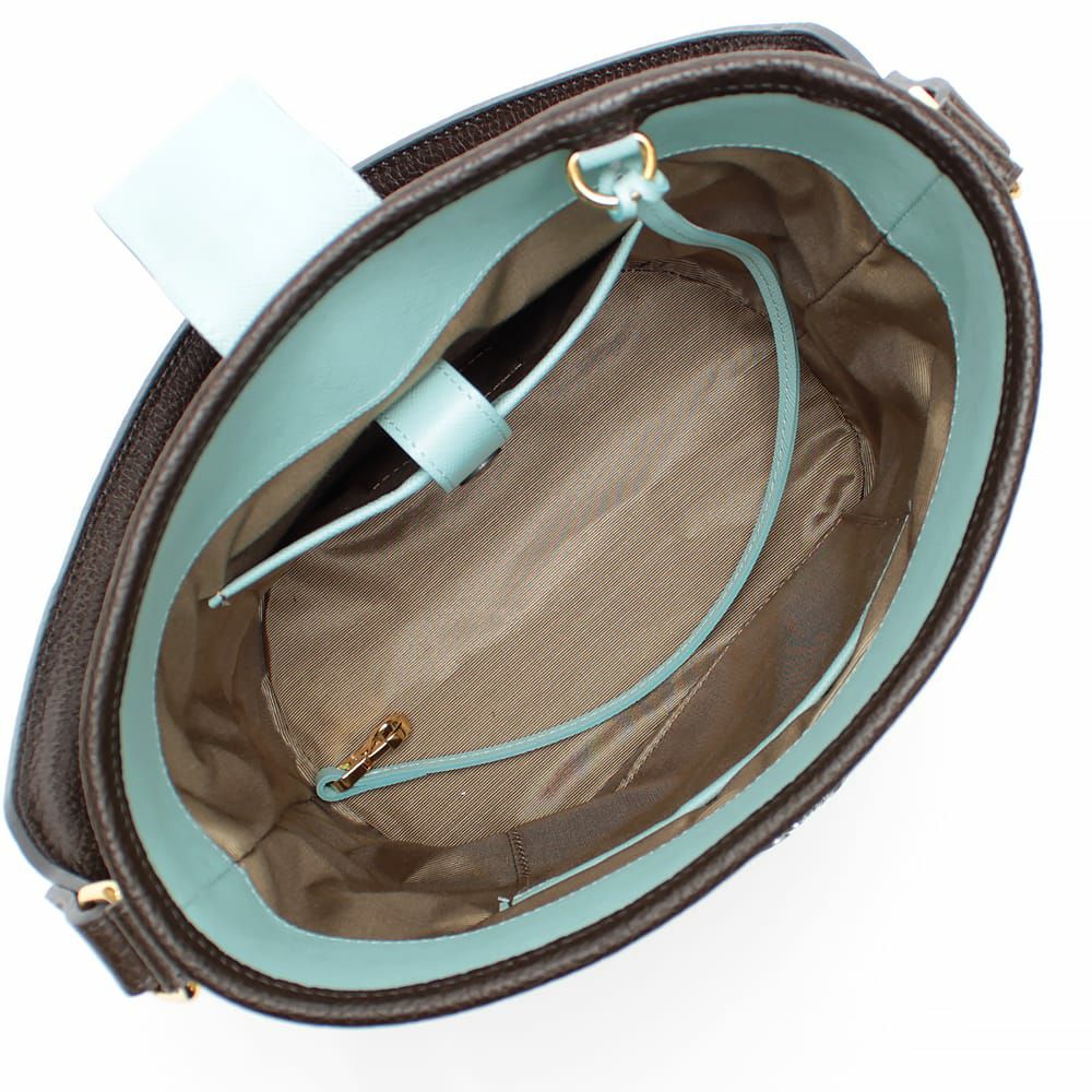 肩掛けできるエレガントなバケット型のトート。