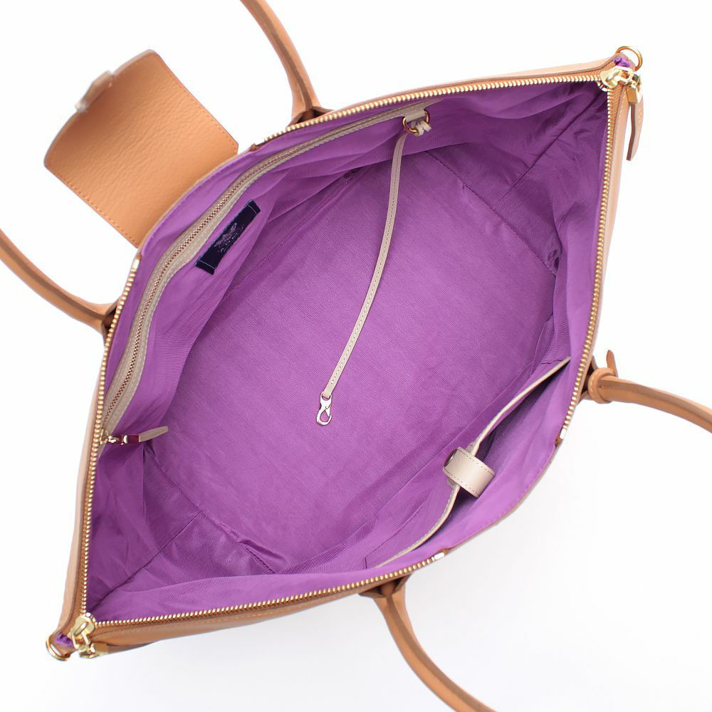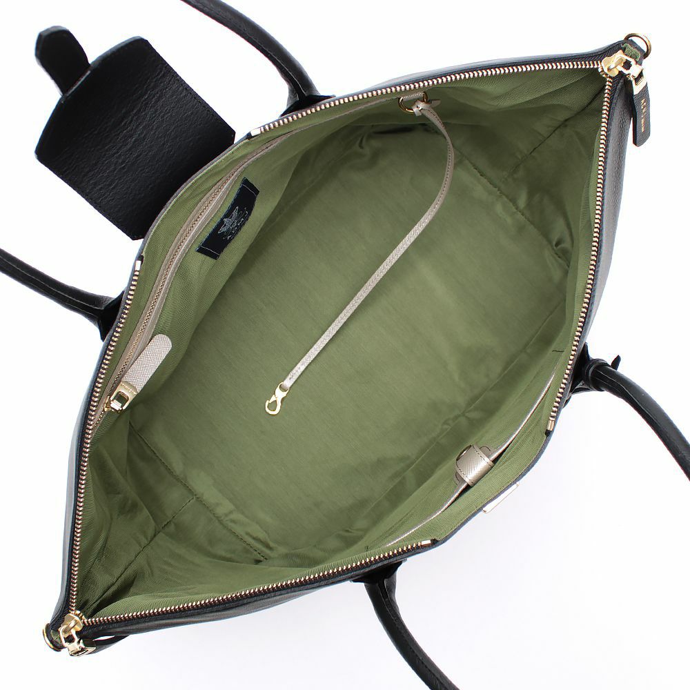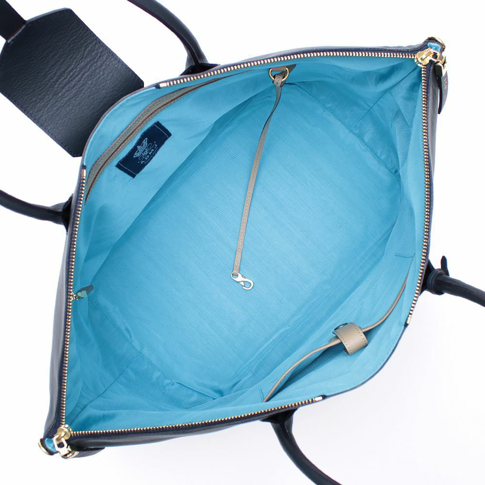 差込みタイプのベロとファスナーが組み合わさった、ニューデザインのトート。