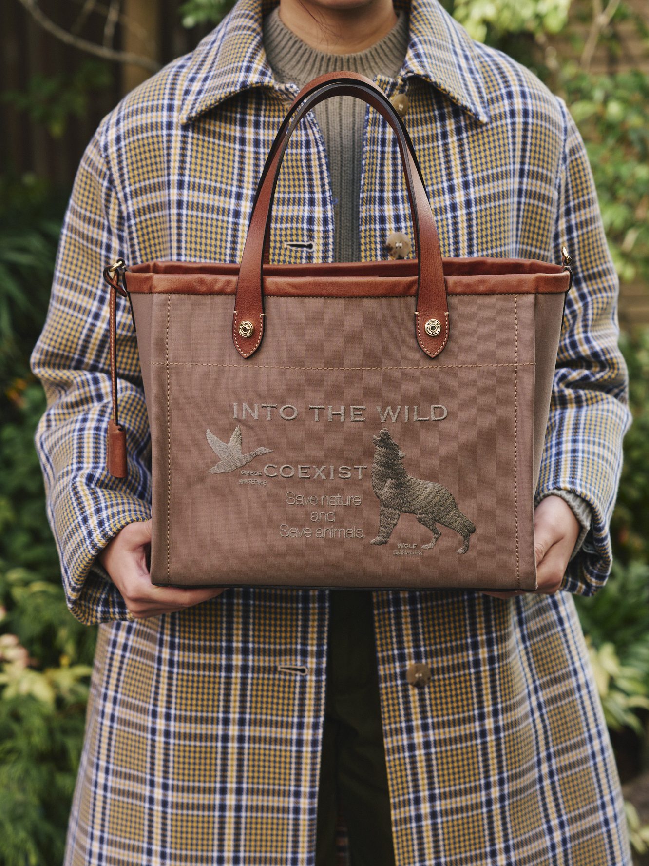 端正な折り目のコットン生地にグースとウルフの刺繍が目を惹くデザイン。