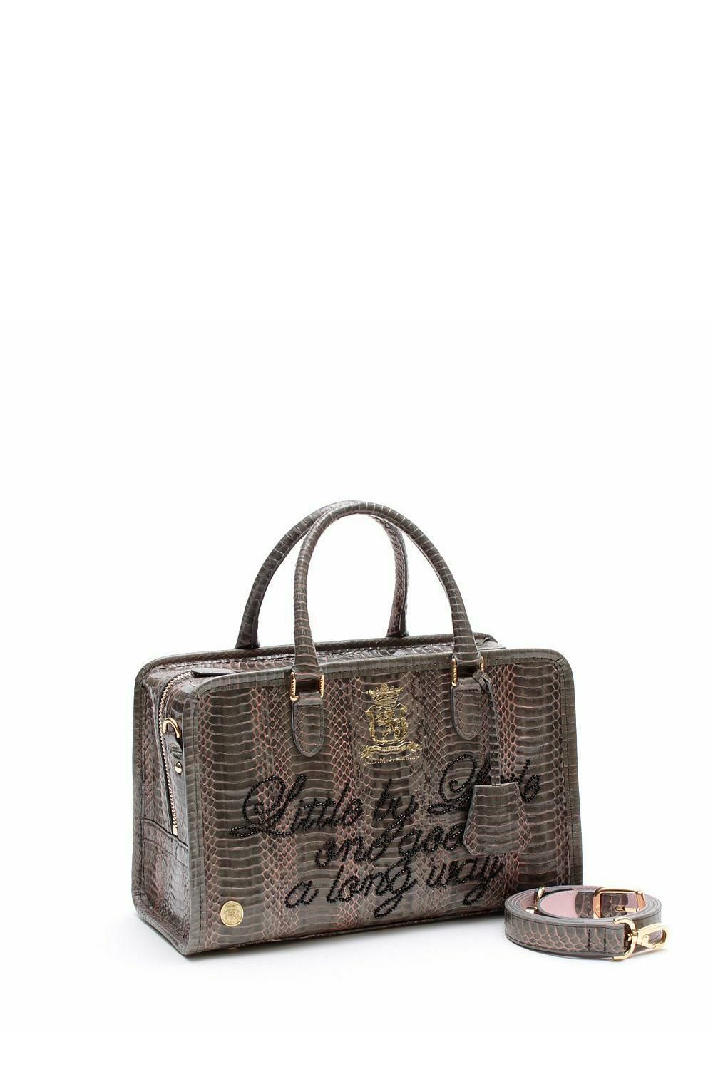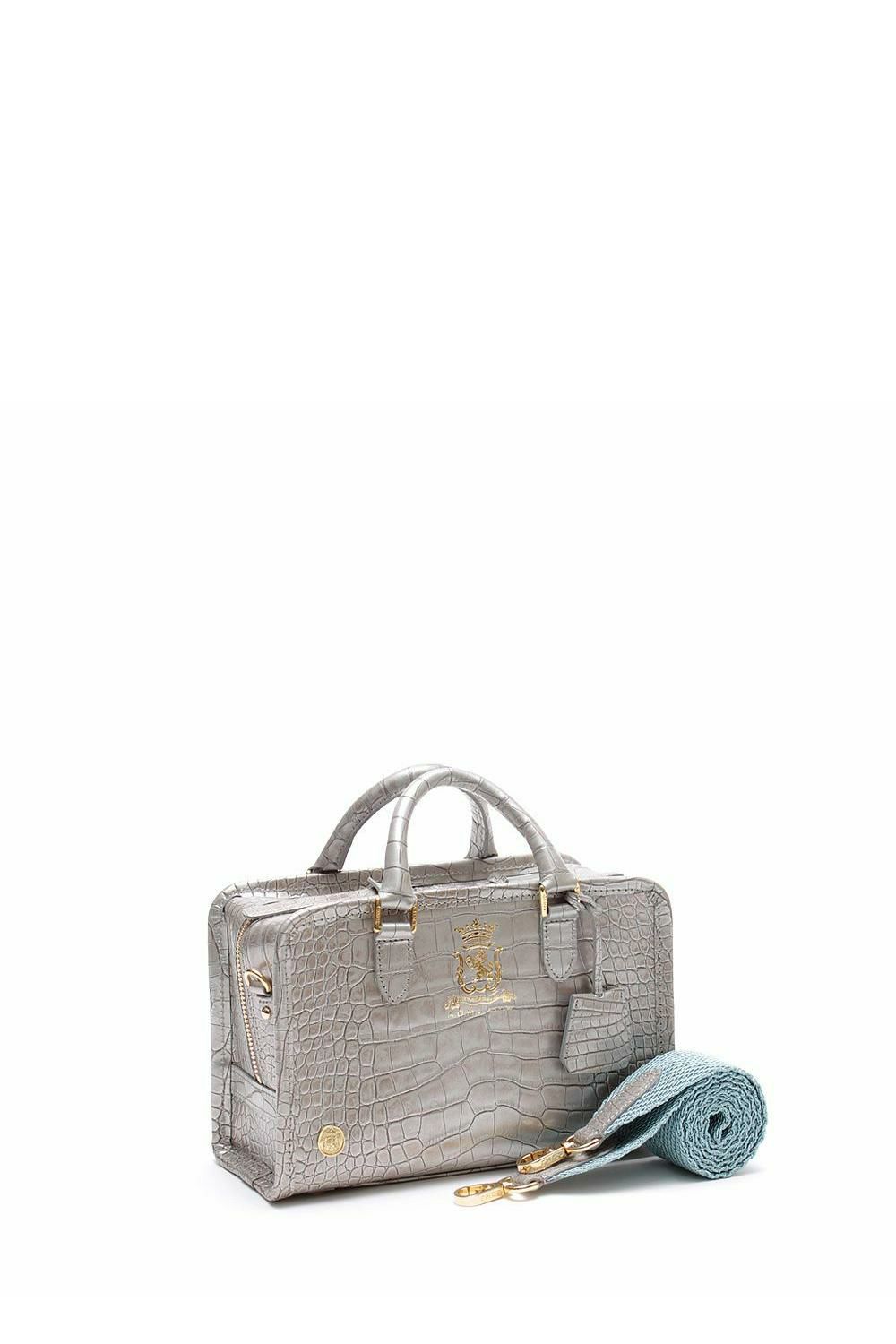 クロコ型押しヘリ巻きボストン23cm