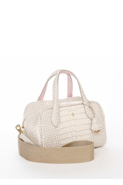 牛革/クロコ型押し ミニボストンバッグ 28cm